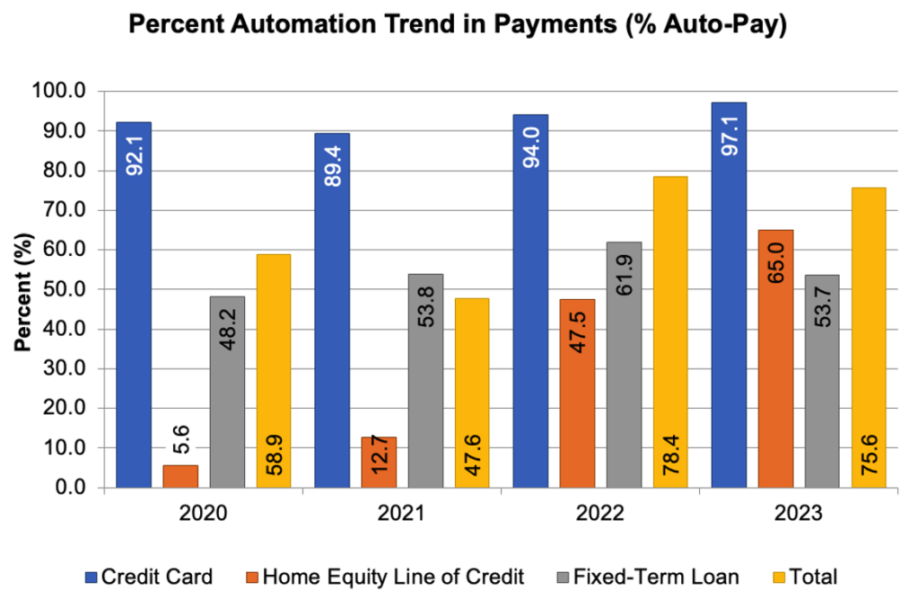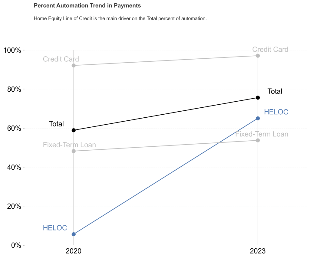 So, IMHO the story here is that HELOC is driving the increase on the total percentage of Auto-Pay. That was the hard part! Now we only need to choose the best graph to highlight our story…